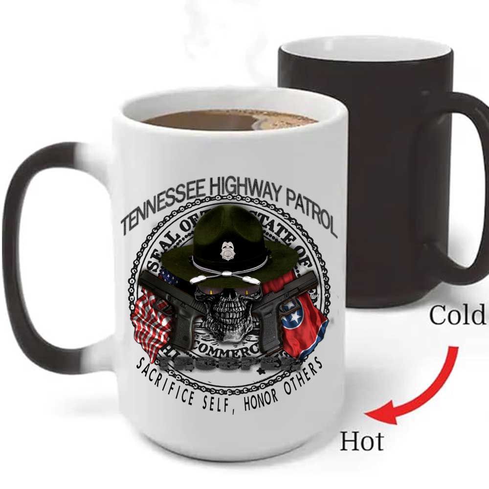 The Tennessee Highway Patrol Trooper Law Enforcement Heat Activated 15 oz Ceramic Custom Coffee Mug makes the perfect police gift. Color of the mug changes when hot contents are poured into it!