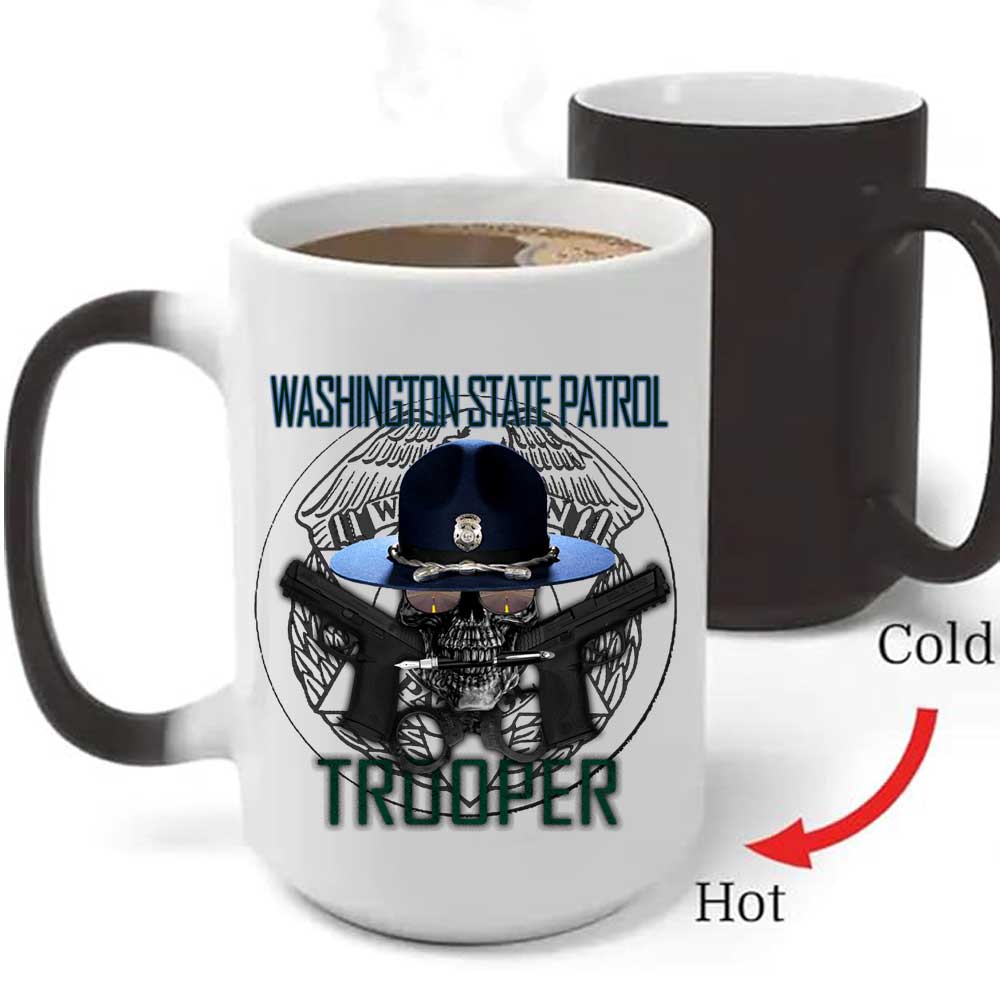 The Washington State Police Trooper Law Enforcement Heat Activated 15 oz Ceramic Custom Coffee Mug makes the perfect police gift. Color of the mug changes when hot contents are poured into it!